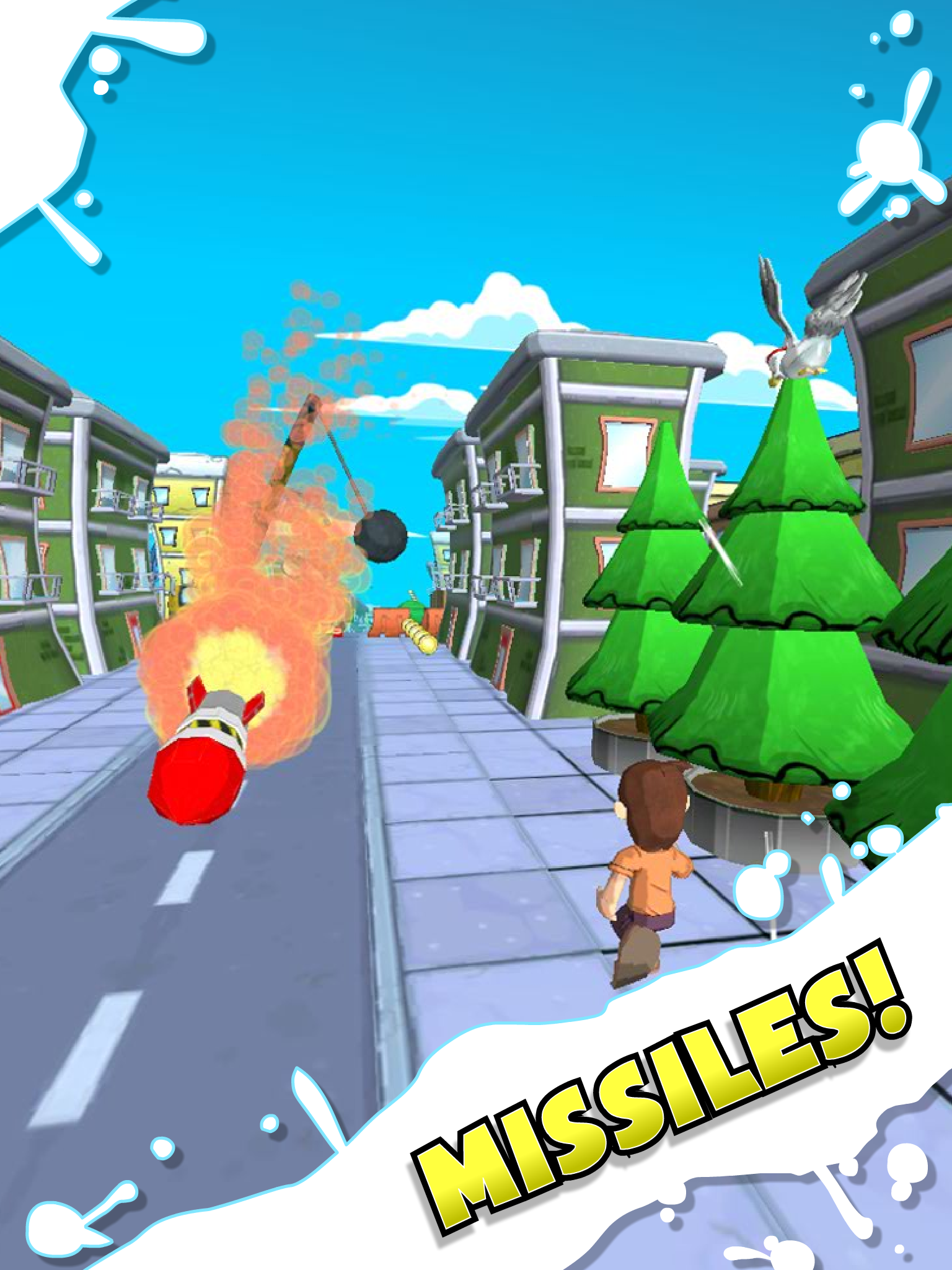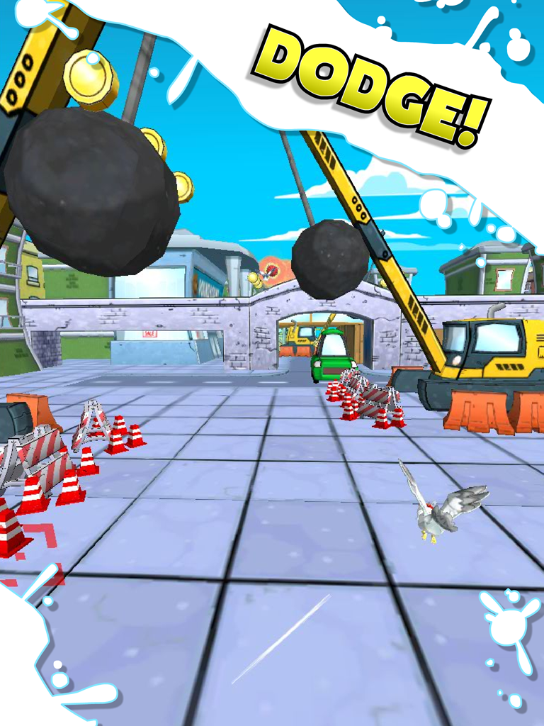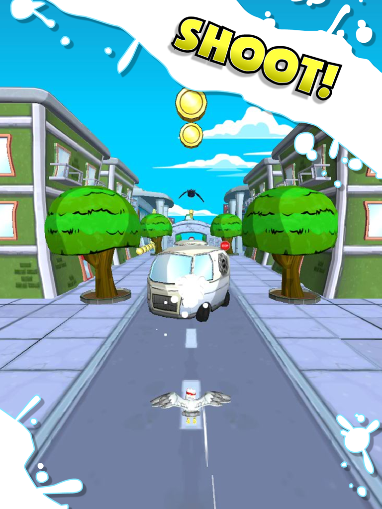 LOOK OUT! There’s a raging seagull on the loose! STEALING food from upstanding citizens and causing chaos! Take flight! You are a seagull! Feel the wind blow through your feathers as you conquer the skies! Poo like you mean it! Seagulls are all about chaos. Aim your shot and let rip! What’s yours is mine! Literally steal candy from babies! Or maybe tins of tuna are more your thing? Steal those too! Watch out! General Overkill is going missile crazy! Avoid the dangers so you can live to poo another day!